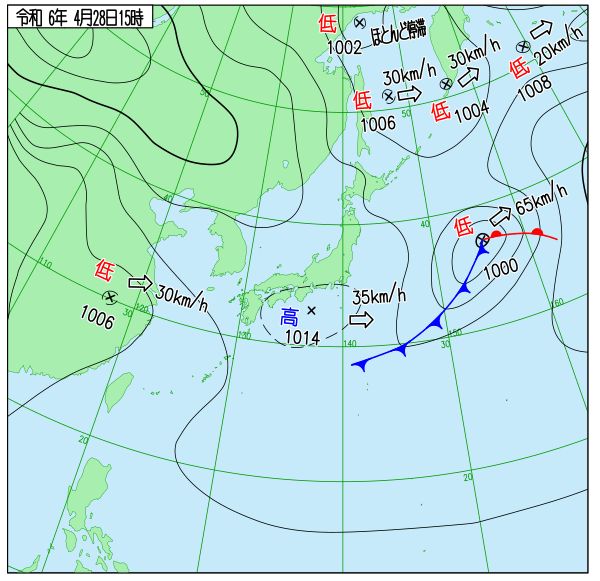 2024年04月28日(日)は、高気圧に覆われ快晴の穏やかな1日となった。