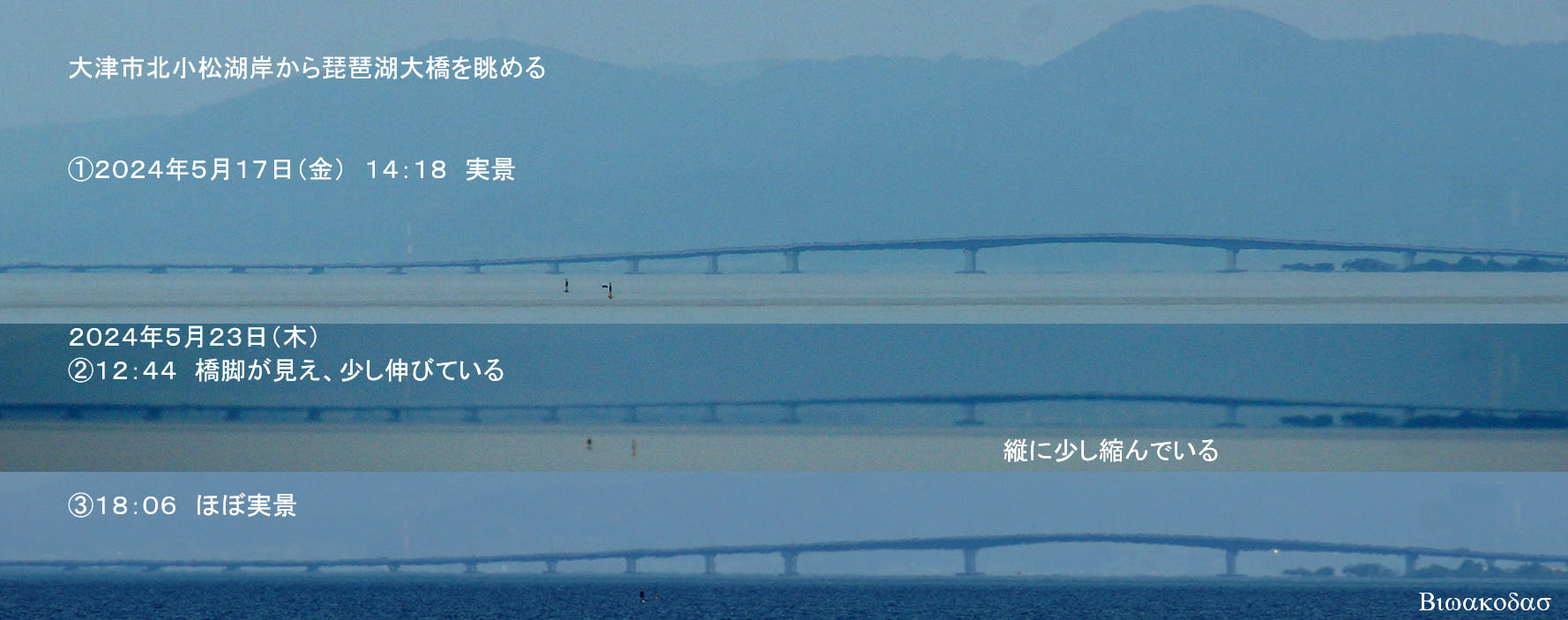 顕著な上位蜃気楼は出なかったが、琵琶湖大橋は東側の橋脚台に若干の伸びが観られた。
