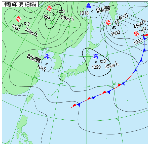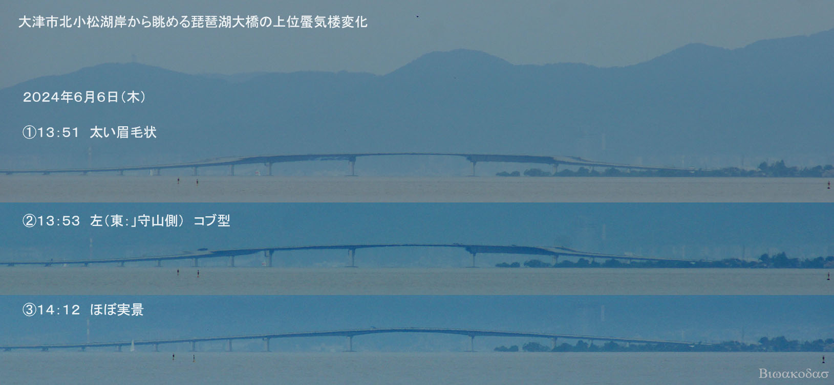 2024年06月06日(木)は、大きな高気圧に広く覆われ穏やかな天気となった。午後に北湖や南湖で上位蜃気楼が見られた。