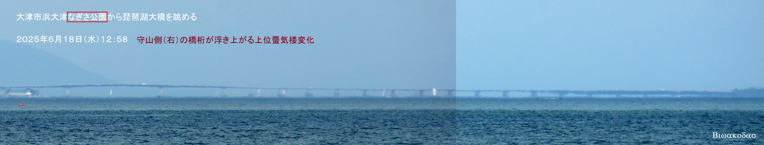 昼過ぎに浜大津なぎさ公園のお祭り広場に出向くと、上位蜃気楼変化が現れていた。