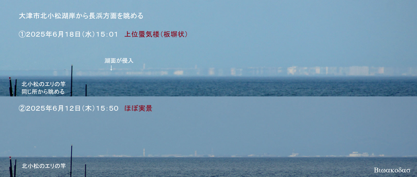 南湖なぎさ公園と大津市北小松から上位蜃気楼を観察
